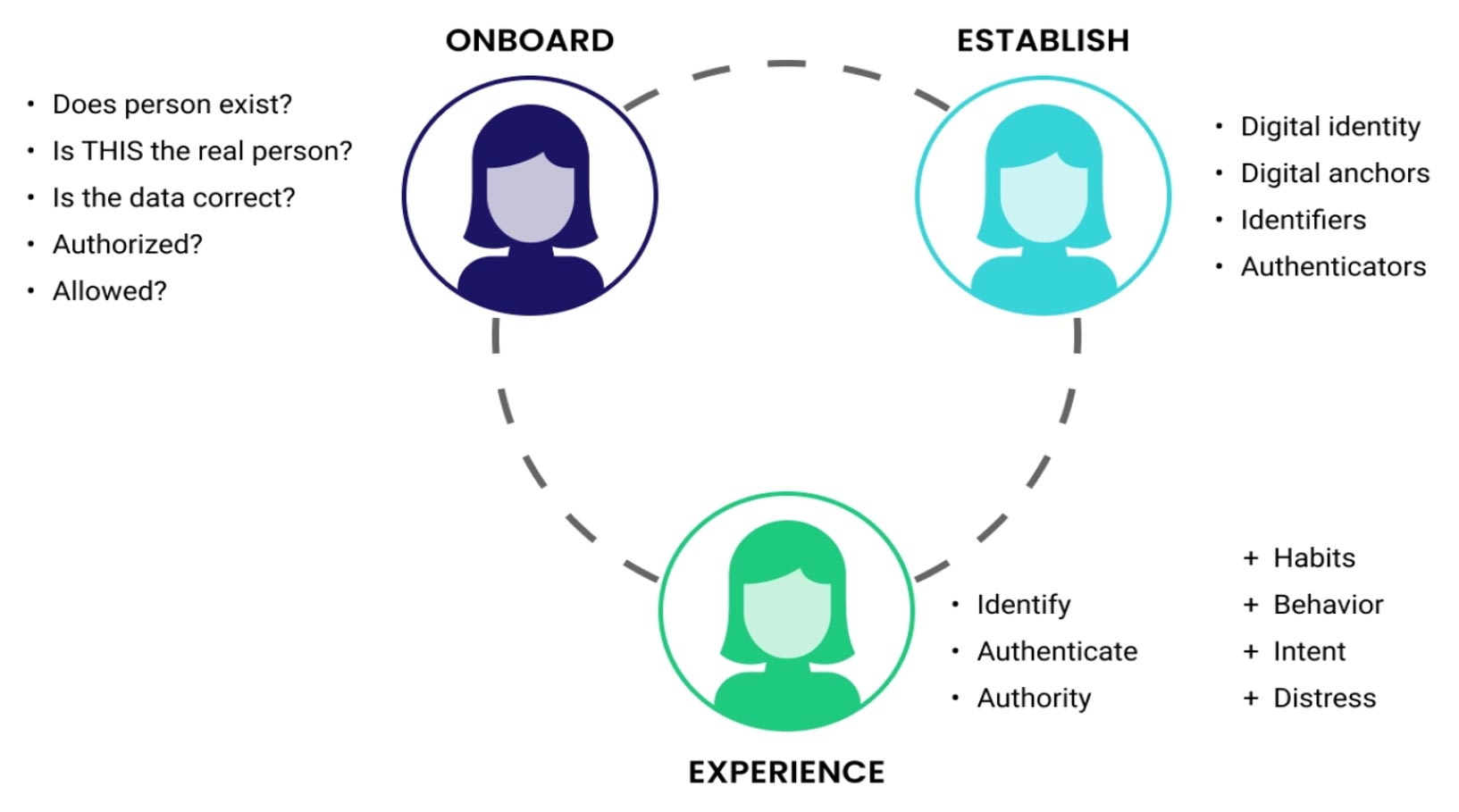 | Establish | Outdated static customer due diligence (CDD) Outdated monitoring rules Identity associations are still primarily bound to a single provider Non-interoperable identifiers, causing fragmentation |